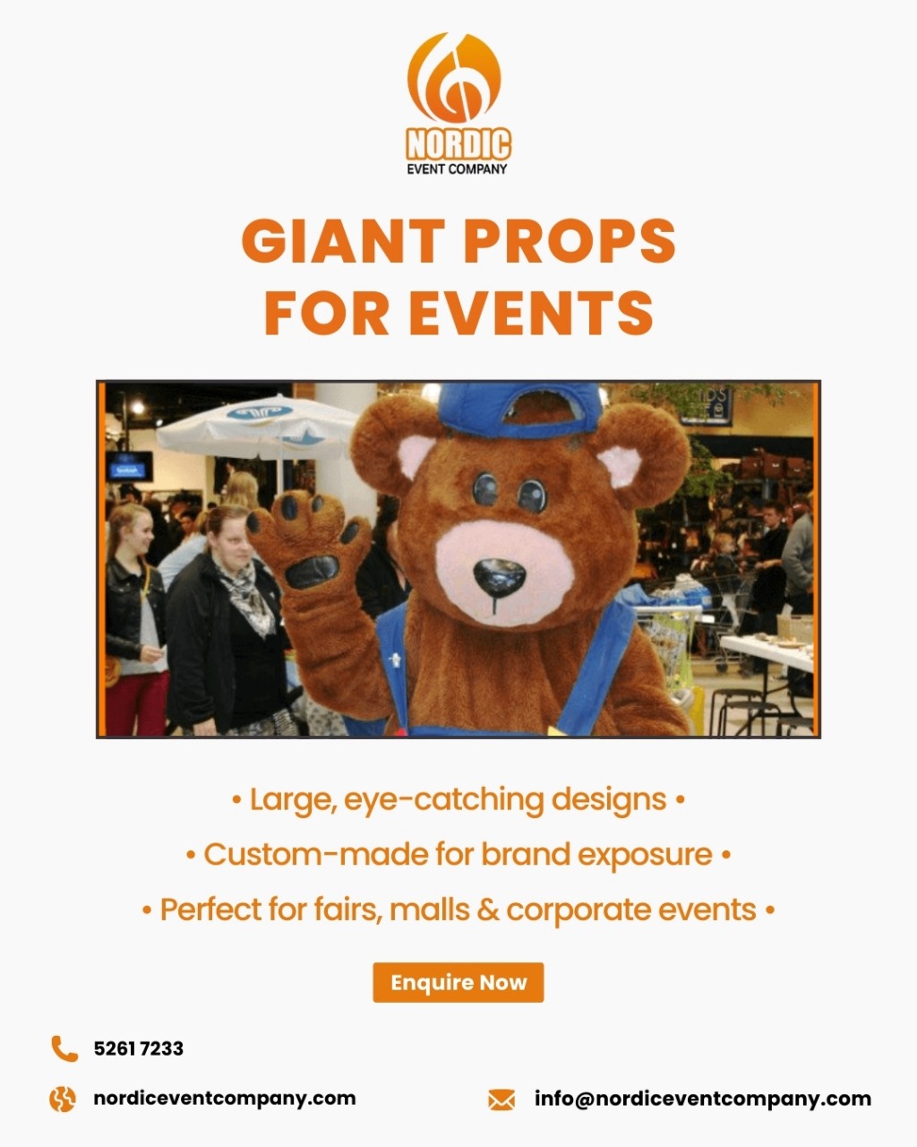 Nordic Event Company producerer, udvikler og forhandler alle former for event og tema aktiviteter, lige fra børneshows til legeland og udstillinger med mekaniske dyr og figurer, samt voks og glasfiber figurer m.m. Og lige meget hvad du søger til dit event, så hjælper vi med at løse enhver opgave, lille som stor.
